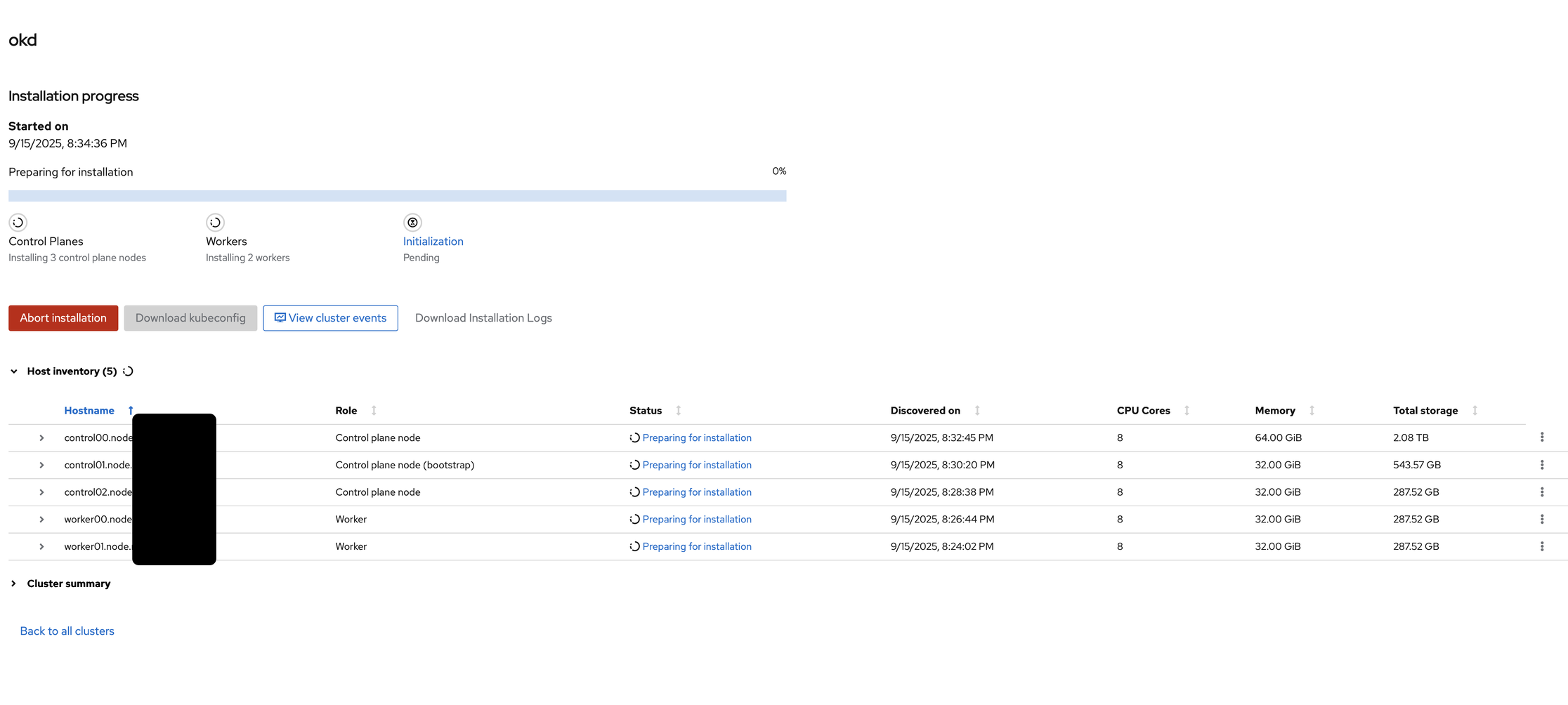 - An OKD (Openshift) setup that I somehow managed to install as a SNO and then expanded into a cluster of three. It is very much unstable, but I learned some important lesson that proven to the very helpful in my reboot.